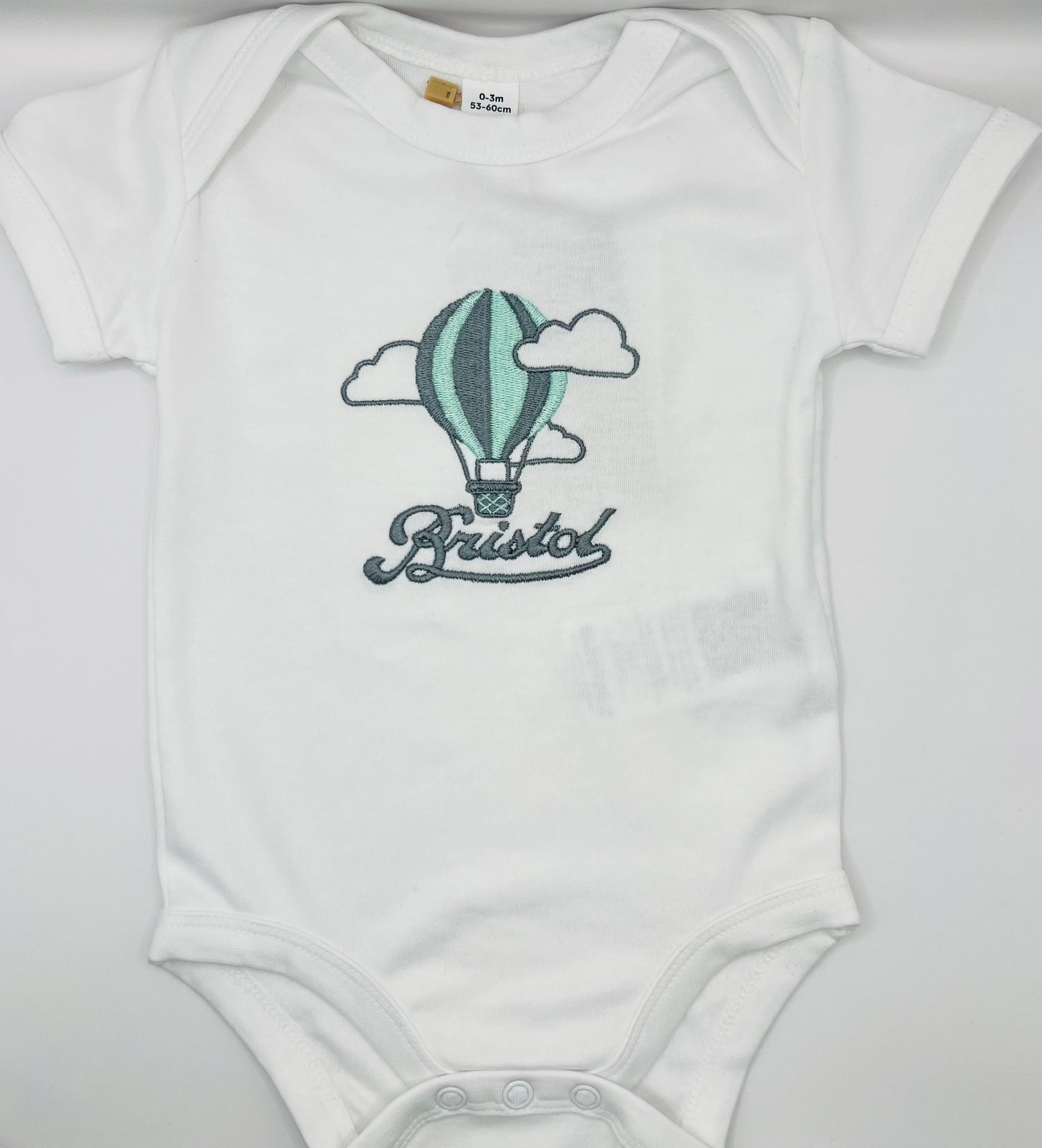 Bristol Short sleeve bodysuit with balloon design is a reminder of the Bristol International Balloon Fiesta which is Europe's largest annual meeting of hot air balloons, attracting over 130 hot air balloons from across the globe.